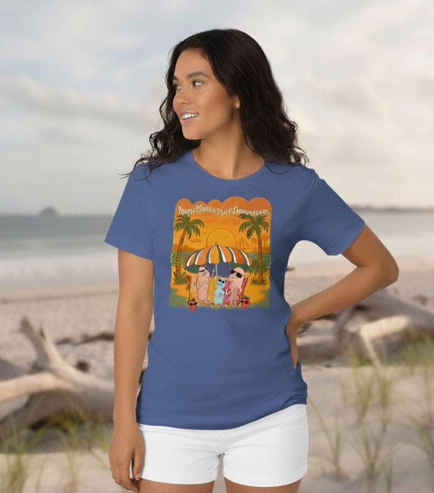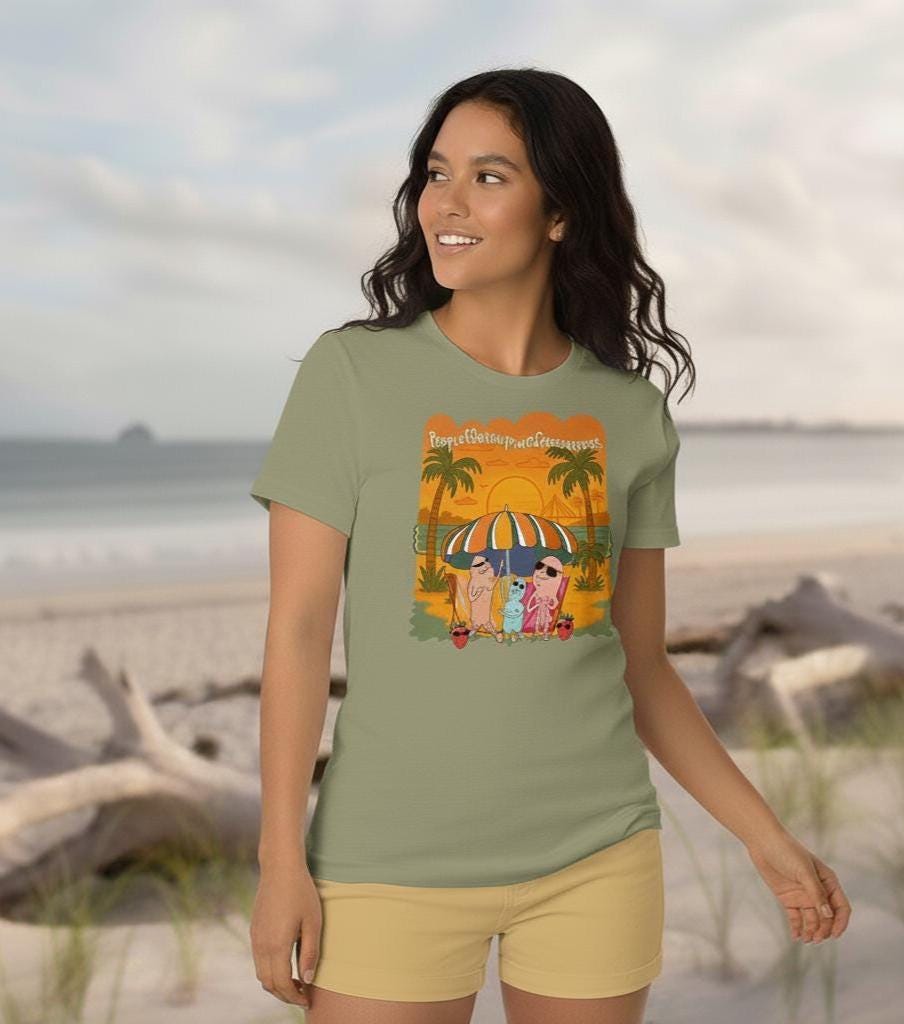 Beach | Short Sleeve Ladies Relaxed Fit Shirt | People Worshipping Strawberries