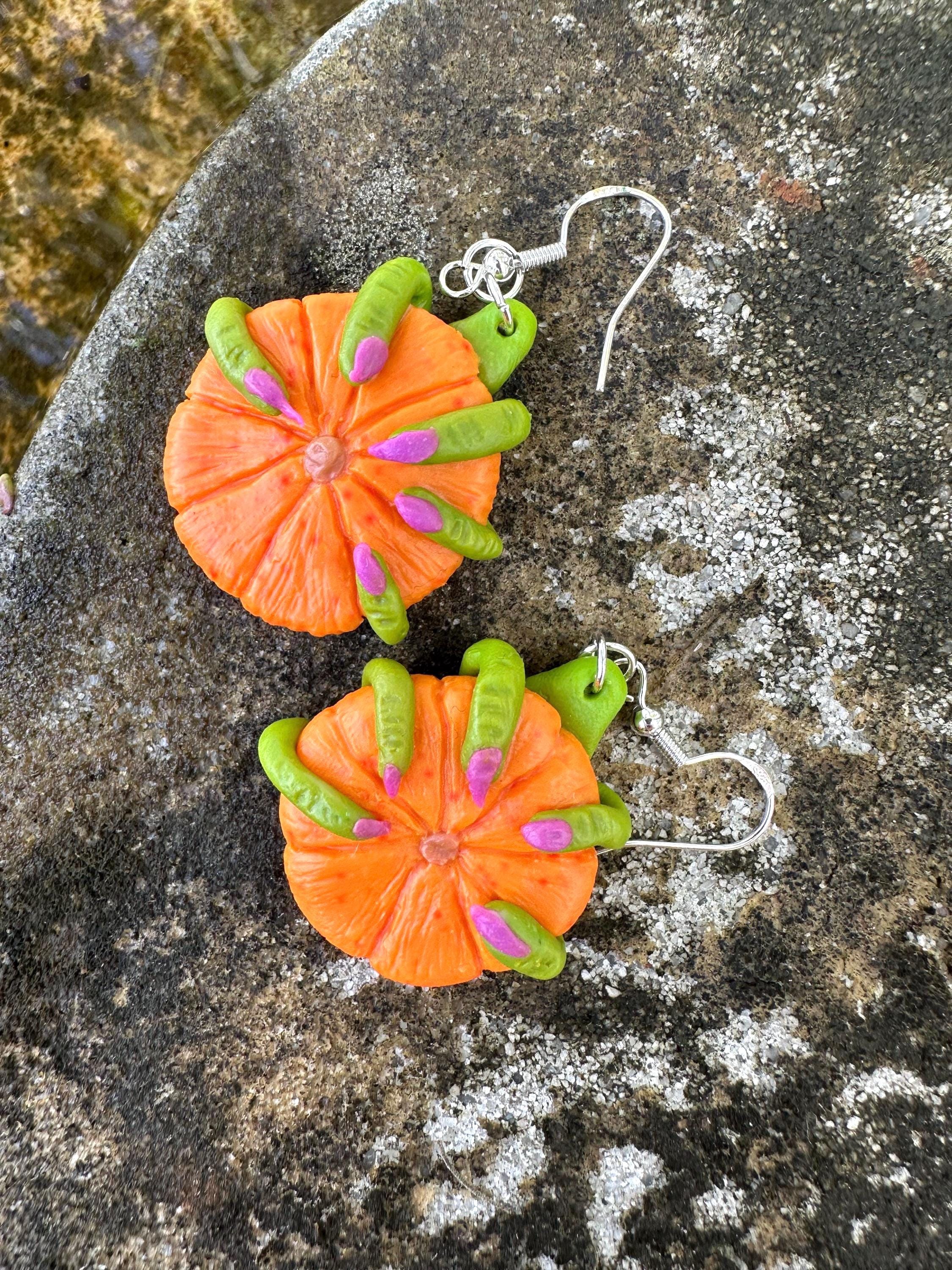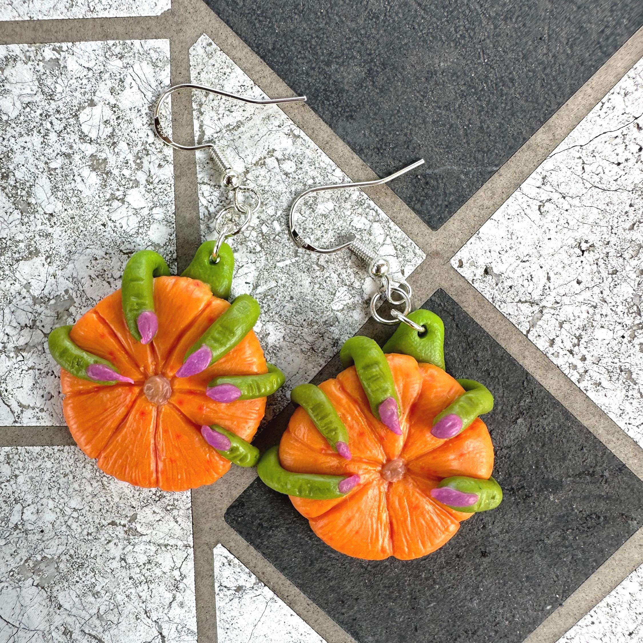 Witch’s Pumpkin Grip Earrings — Handmade Halloween Jewelry